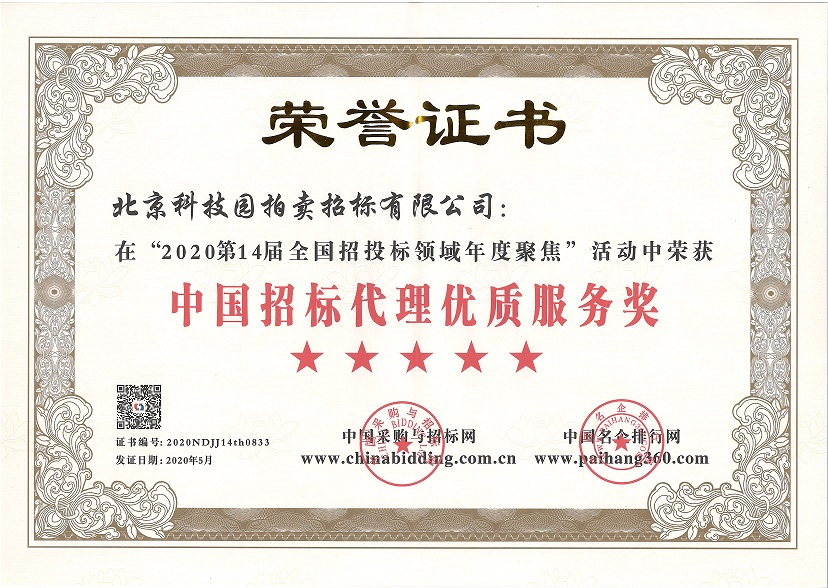 2020第14屆全國招投標領域年度聚焦“中國招標代理優(yōu)質服務獎”