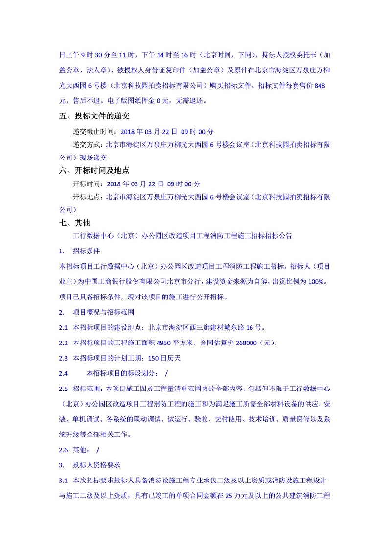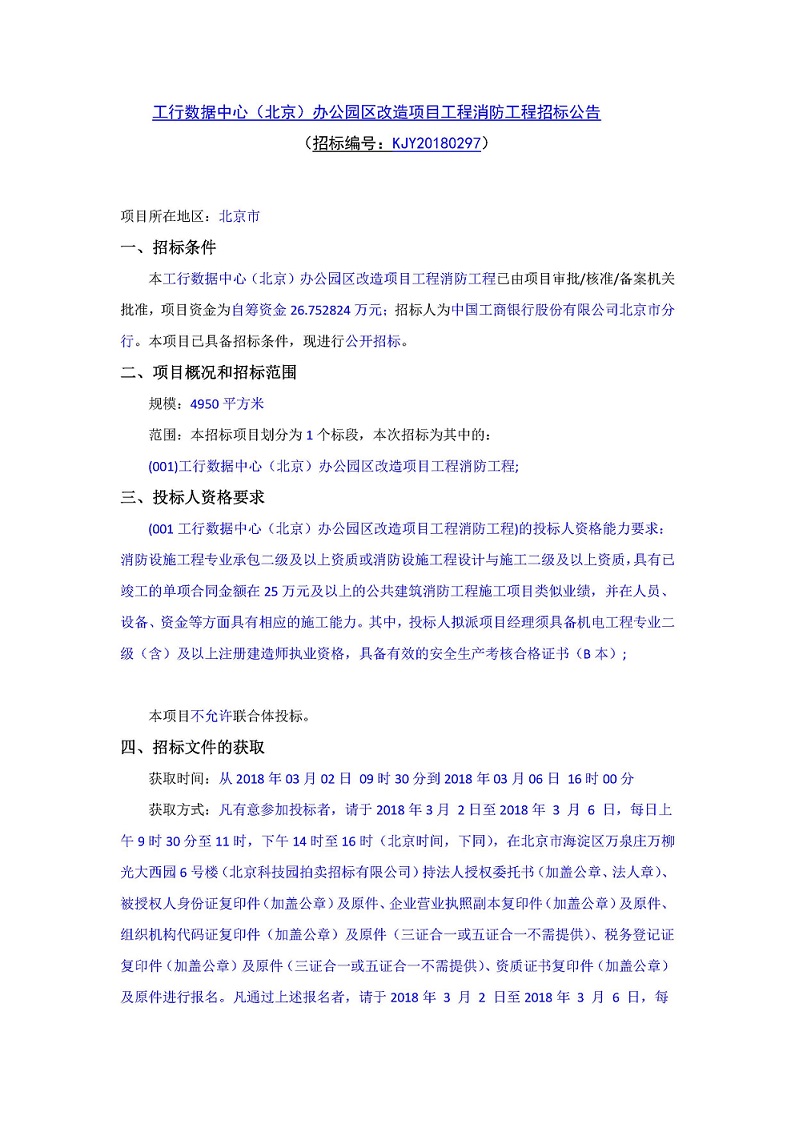 工行數據中心(北京)辦公園區改造項目工程消防工程招標公告