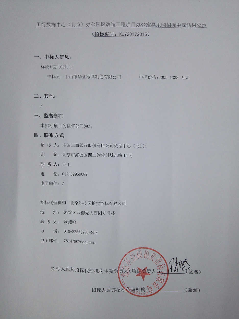 工行數(shù)據(jù)中心(北京)辦公園區(qū)改造工程項(xiàng)目辦公家具采購招標(biāo)中標(biāo)結(jié)果公示