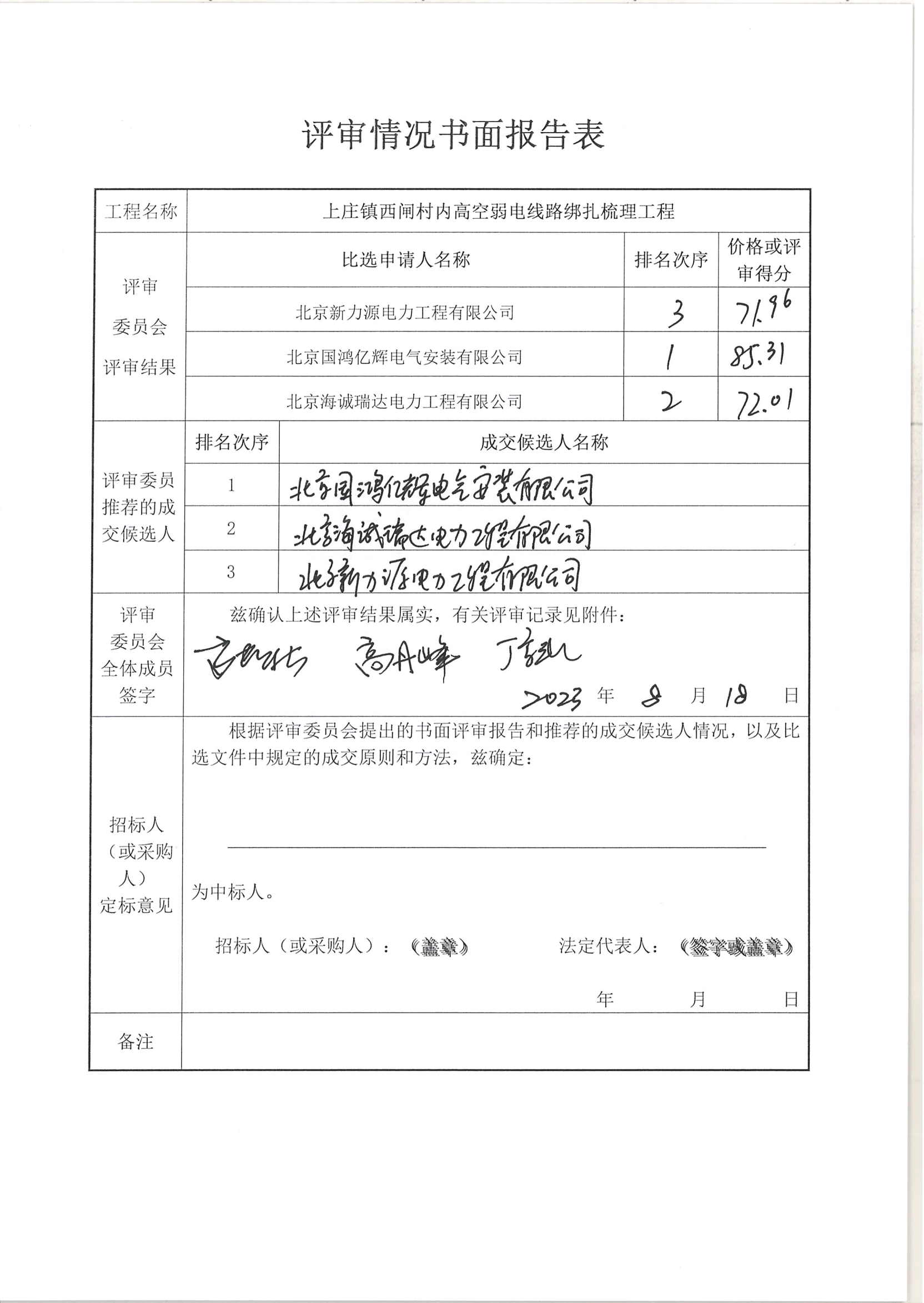 上莊鎮西閘村內高空弱電線路綁扎梳理工程中選公告